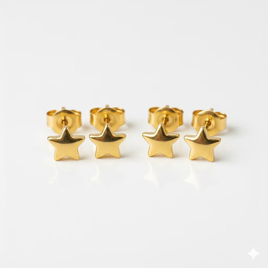 Altın Kaplama Cerrahi Çelik Kulak Delme Küpesi - Shape Star Alerji Yapmayan (Çift)
