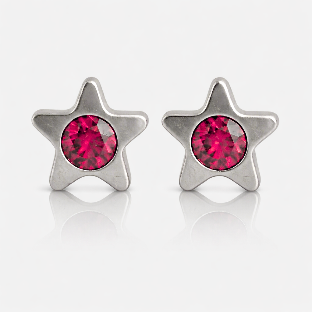 Cerrahi çelikten üretilmiş Starlite Ruby küpeler, derin kırmızı ışıltılarıyla şıklığınızı gösterir.